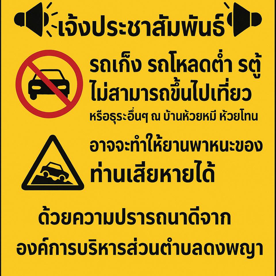 เนื่องด้วย องค์การบริหารส่วนตำบลดงพญา อำเภอบ่อเกลือ จังหวัดน่าน แจ้งประชาสัมพันธ์ รถเก๋ง รถโหลดต่ำ รถตู้ ไม่สามารถขับขึ้นไปเที่ยวหรือทำธุระอื่นใด ณ บ้านห้วยหมี ห้วยโทน เพราะอาจทำให้ยานพาหนะเสียหายจากสภาพถนนได้